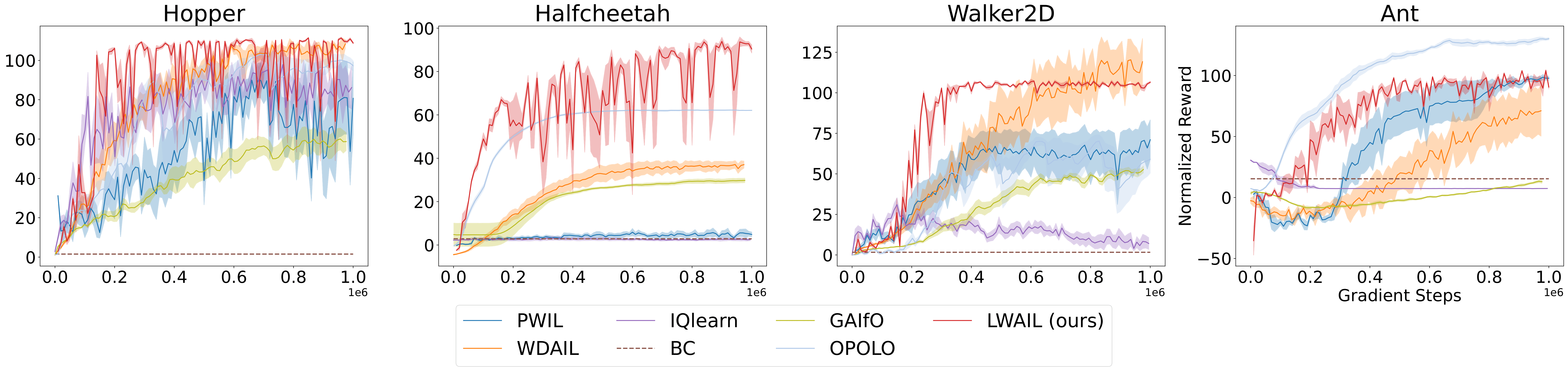 - Imitation stage: We freeze this ICVF embedding and use the Euclidean distance in this new latent space as the cost function within a standard Wasserstein AIL framework.